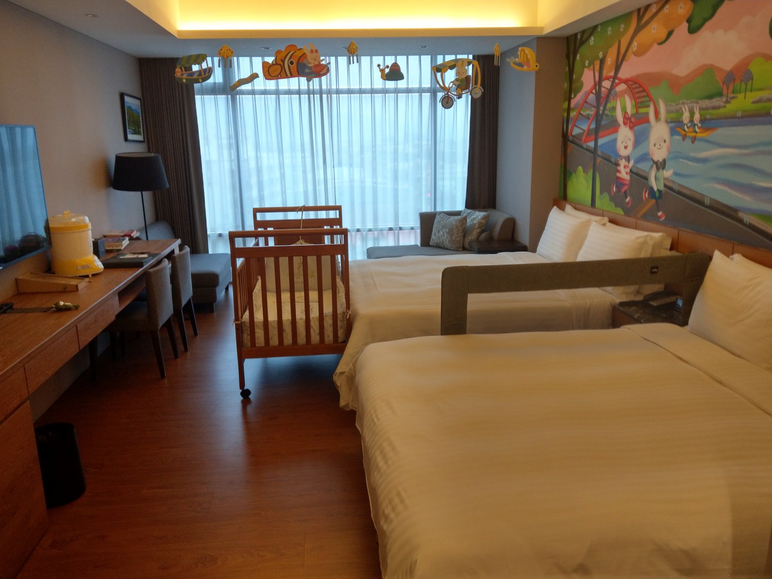 不算小的房間可以再訂房時附註需要床圍或嬰兒床,桌上備品一應俱全!