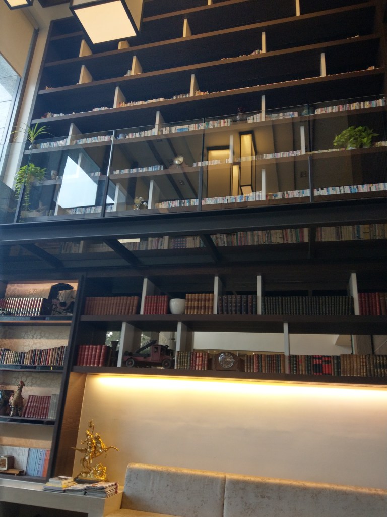再放完行李稍作休息後來到一樓的哥德咖啡廳,開放時間是下午一點到晚上八點,提供各式小點、餅乾及冷熱飲,旁邊有整面的書牆加上挑高設計,透明走廊也蠻有特色,吃一點東西等等才有體力陪小孩玩(?😂