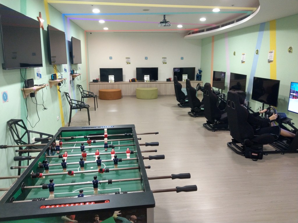 大人遊戲區有賽車、跳舞及瑪莉歐遊戲,需到櫃台預約,桌上足球小朋友也可以一起玩