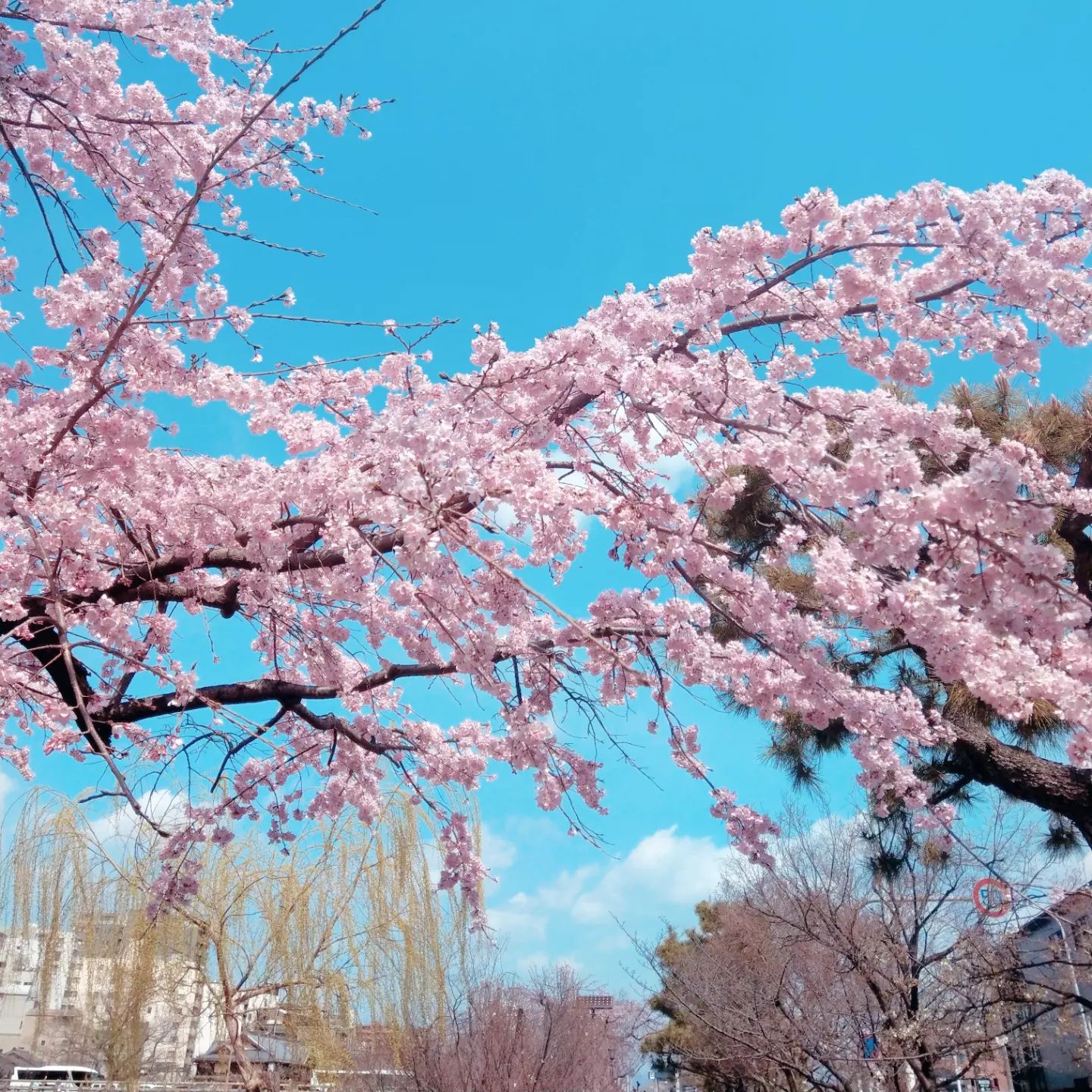 在待不長的時間中能看到滿開的枝垂櫻與櫻吹雪很感謝了