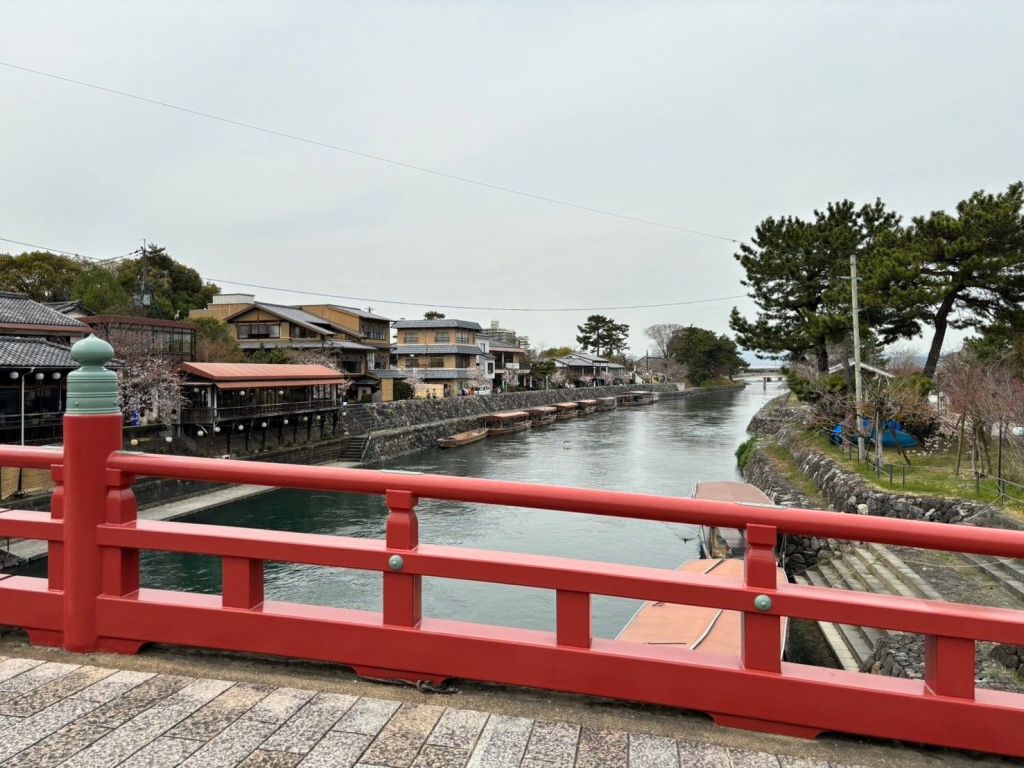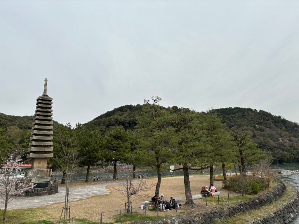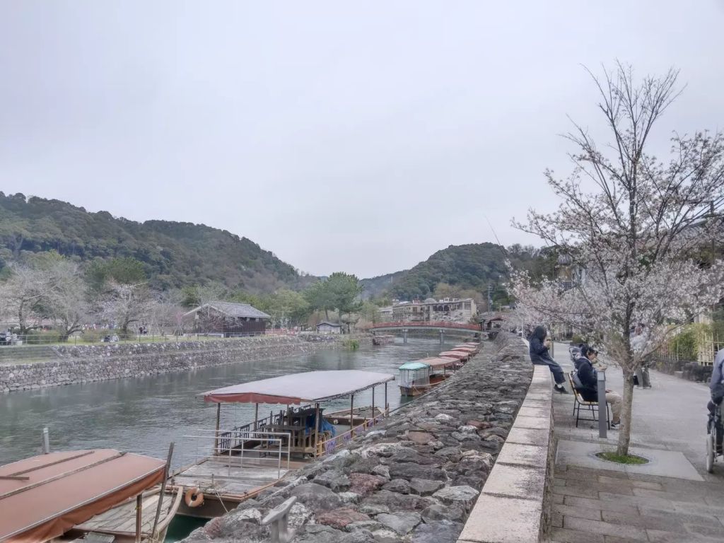 即使這天宇治的櫻花只開三分配上山景河川別有風味